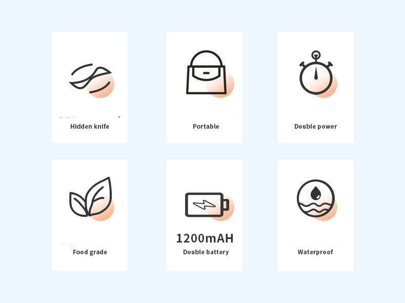 Product name: portable juicer cup Rated power: 40W Rated capacity: 300ml Charging voltage: 5V Battery capacity: 1200mAH Charging current: 1A