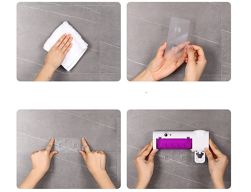 Product name: toothpaste toothbrush rack Style: Wall-mounted self-adhesive Specification: 5 holes + toothpaste Color as shown Installation: punch-free installation Material: ABS environmental protection material